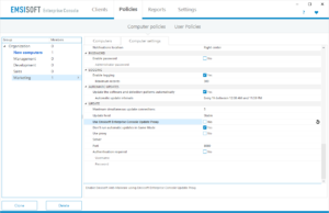 When maintaining computers in foreign networks, always make sure you disable the computer setting “Use Emsisoft Enterprise Console Update Proxy” in the settings group “UPDATE” to avoid that all update traffic gets re-routed via your Enterprise server instance in a different location than the client’s network. The Enterprise Console Update Proxy only helps to save internet traffic when it’s located in the same network, as it caches the update files.