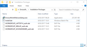 When you click “OK”, an Explorer window showing the new package files will open up. All you need to do is copy these files to your target machines and run the “Install.bat” file. Once installed, Emsisoft Anti-Malware will connect to the Enterprise server and the computer will show up in the “Clients” list.